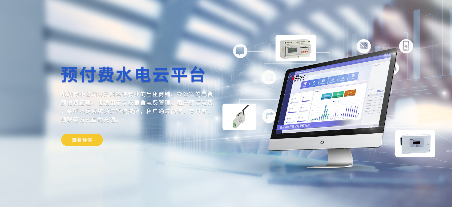 安科瑞提供的解決方案包括Acrel-EIoT能源物聯網云平臺、變電所運維云平臺、安全用電管理云平臺、環保用電監管云平臺智慧消防云平臺能源管理云平臺、工業企業能源管控平臺、遠程預付費云平臺、餐飲油煙監管云平臺、電動汽車/電瓶車充電樁收費管理云平臺、電力監控/無線測溫系統、電能質量治理系統、電氣火災監控系統消防設備電源監控系統、防火門監控系統應急照明和疏散指示系統、智能照明控制系統、醫用隔離電源絕緣監測系統等,幫助用戶實現能源智能化、可視化、精細化管理,提高用能效率和用能安全,為企業節能降耗和實現能源數字化建設提供數據服務。